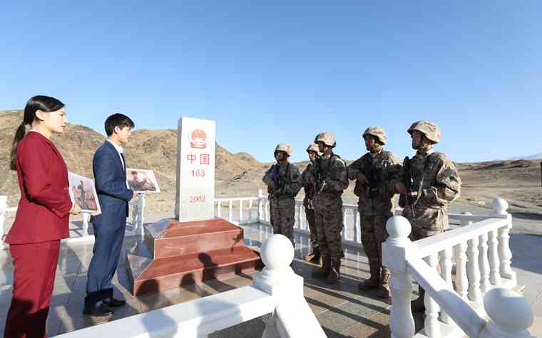 “我们是中国边防军人,我们是湖南雷锋纪念馆宣讲团,我们共同巡逻在祖国236号界碑,祝福伟大的祖国繁荣昌盛、国泰民安。”宣讲团成员跟随连队官兵,对界碑巡逻踏查。凛冽寒风,吹不灭保家卫国的坚定信念;险峻高山,挡不住守护家园的无畏身影。