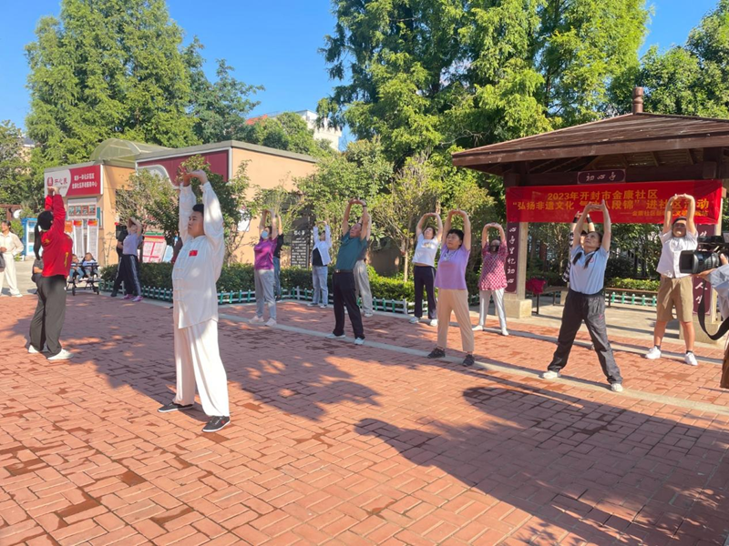 8月29日,金康社区举办“弘扬非遗文化 气功八段锦”进社区活动。新华网发 步尧 摄
